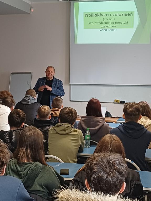 Przeprowadził w naszej placówce warsztaty poświęcone tematyce uzależnień wśród młodzieży.