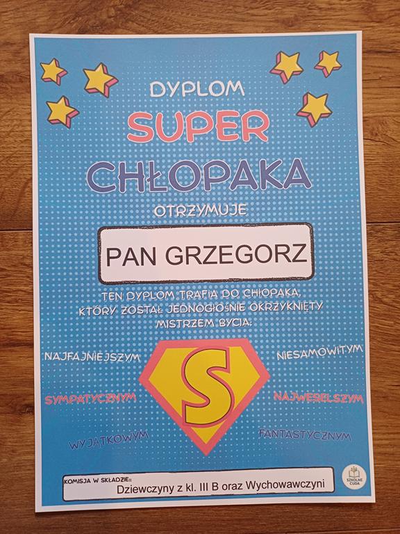 Dziewczyny przygotowały również dyplom dla Pana Wicedyrektora Szkoły Jana Grzegorza Nowakowskiego.