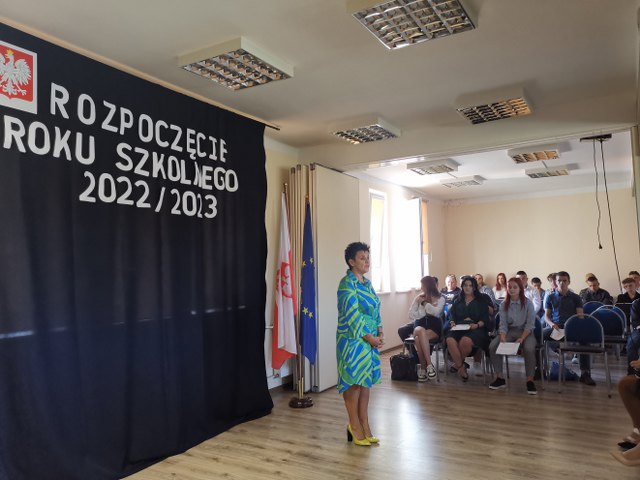 1 września 2022 r. uroczystą akademią rozpoczęliśmy rok szkolny 2022/2023. Pani Dyrektor powitała wszystkich przybyłych uczniów, rodziców oraz grono pedagogiczne. Szczególne słowa skierowała do uczniów rozpoczynających naukę w naszej szkole.
