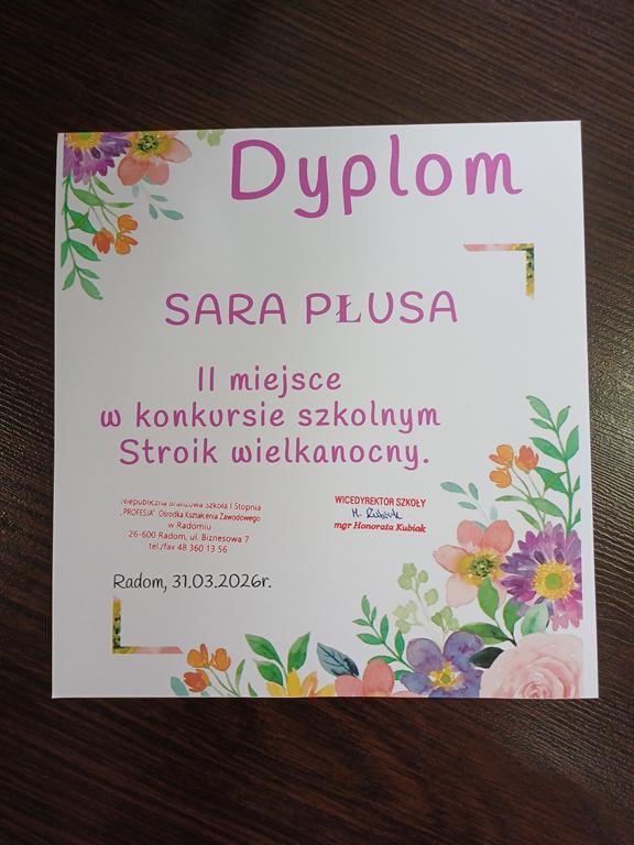 II miejsce SARA PŁUSA kl.2